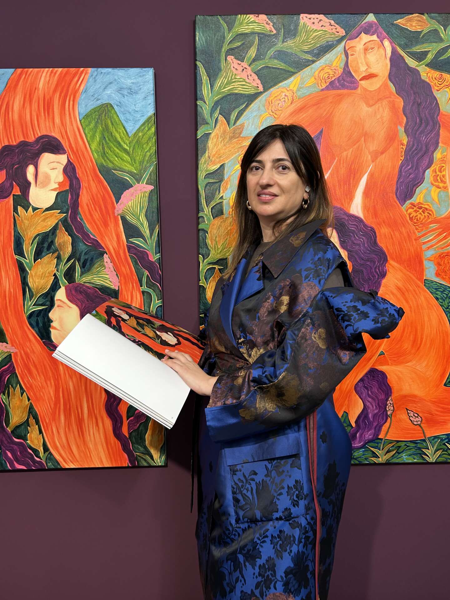 Rusudan Khizanishvili (b. 1979), based in Tbilisi, Georgia, is interested in subjective female imagery and mythological iconography, which she combines with the exoticism of Georgian painting to reveal her own colorful palette. Her identity as a female painter formed within a particular culture, reflections on motherhood, and the historical singularity of her country have all become objects of visual exploration and have influenced her work.