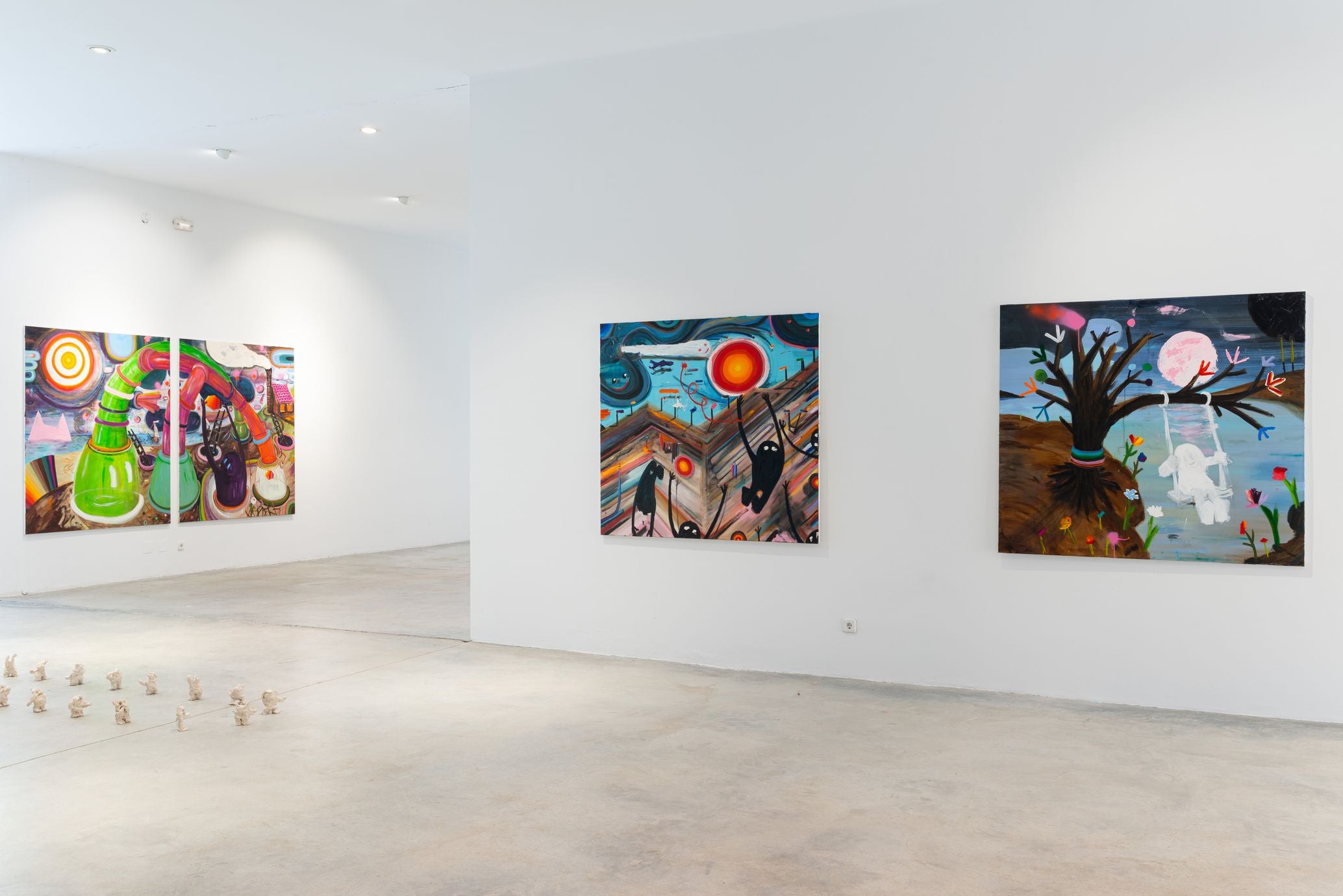 In this exhibition, Rinck and Grözinger explore the power of escape through art. Their paintings and installations immerse us in alternative universes, where distractions become refuges from reality. From a critical perspective, they address how our society resorts to these escapes to avoid confrontation with the truth. Through a critical lens, they explore how overexposure and overstimulation push us into the realm of the virtual and the fictional, distancing us from the authenticity of our existence.