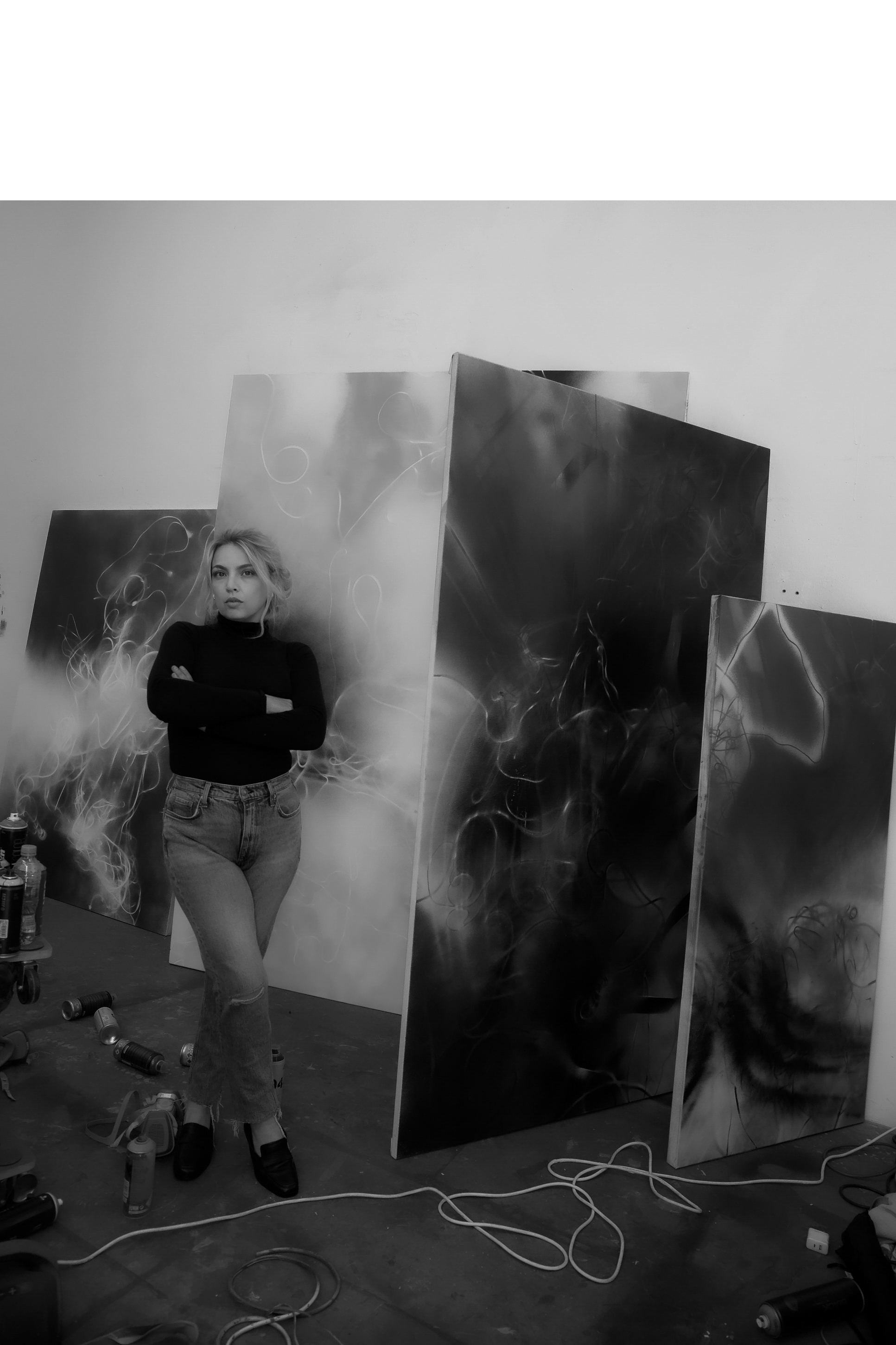 For nearly four months, Andrea has deeply immersed herself in the landscapes, colors, and textures of Mallorca, nurturing her artistic practice and drawing profound inspiration from the island's unique beauty. As a Mallorcan, I am filled with pride to see how these rich experiences have materialized into the impressive works. Andrea's art not only captures the essence of Mallorca but also reinterprets it with a distinctive sensitivity that sets her apart. Her usual approach of applying bold strokes, drips, splatters, and spontaneous gestures creates atmospheric dimensions unlike anyone working with spray paint today. This innovative technique has earned her critical acclaim and recognition as an internationally known American artist.