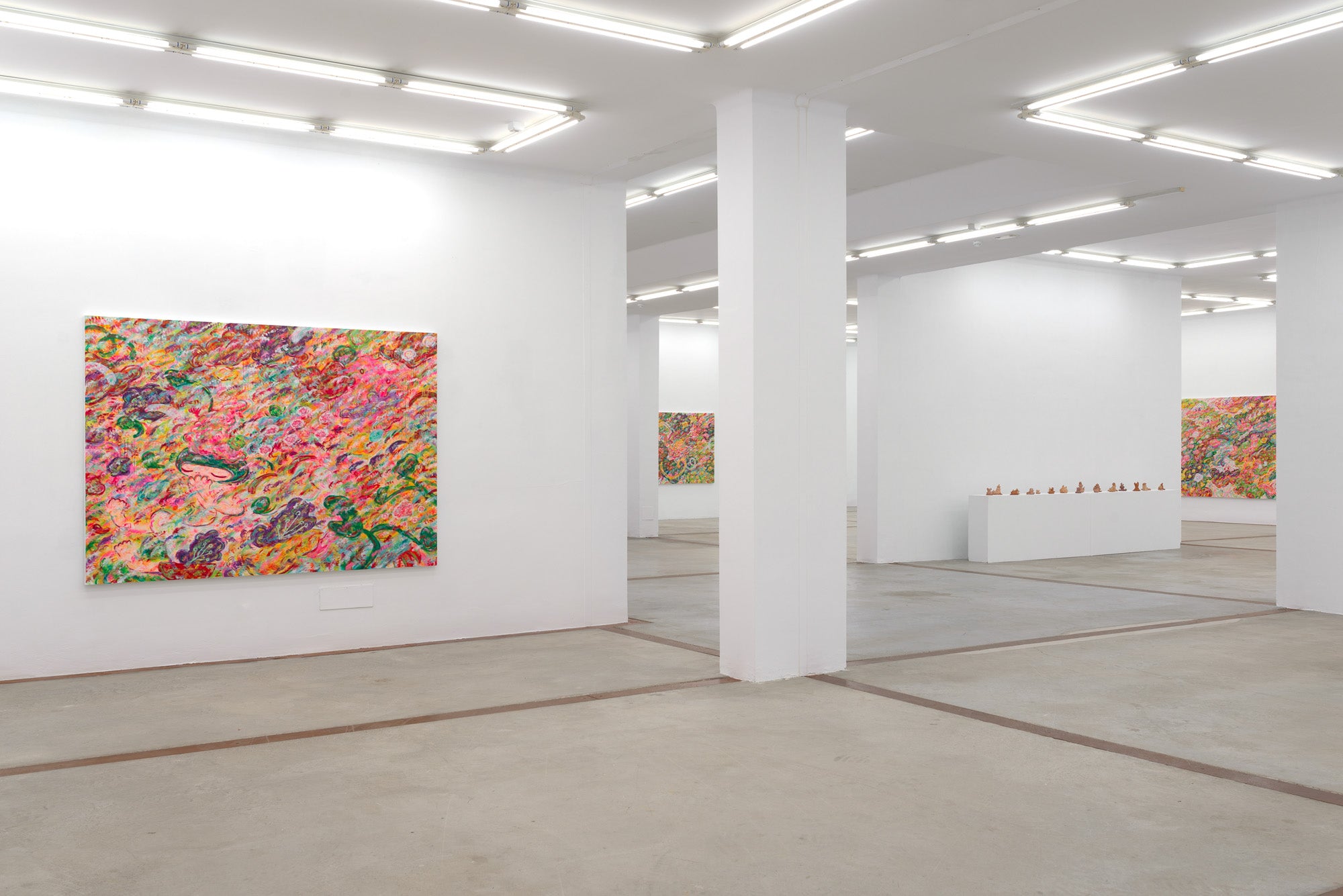 The exhibition spaces are large and high to the ceiling but flexible with concrete flooring and simple white walls. With limited window room and tailored lighting, these exhibition spaces give specific emphasis on the art displayed. Howebver, the patio's large glass doors open into the exhibition halls, the gift shop and the restaurant, with the light being beautifully filtered through the colonnade.