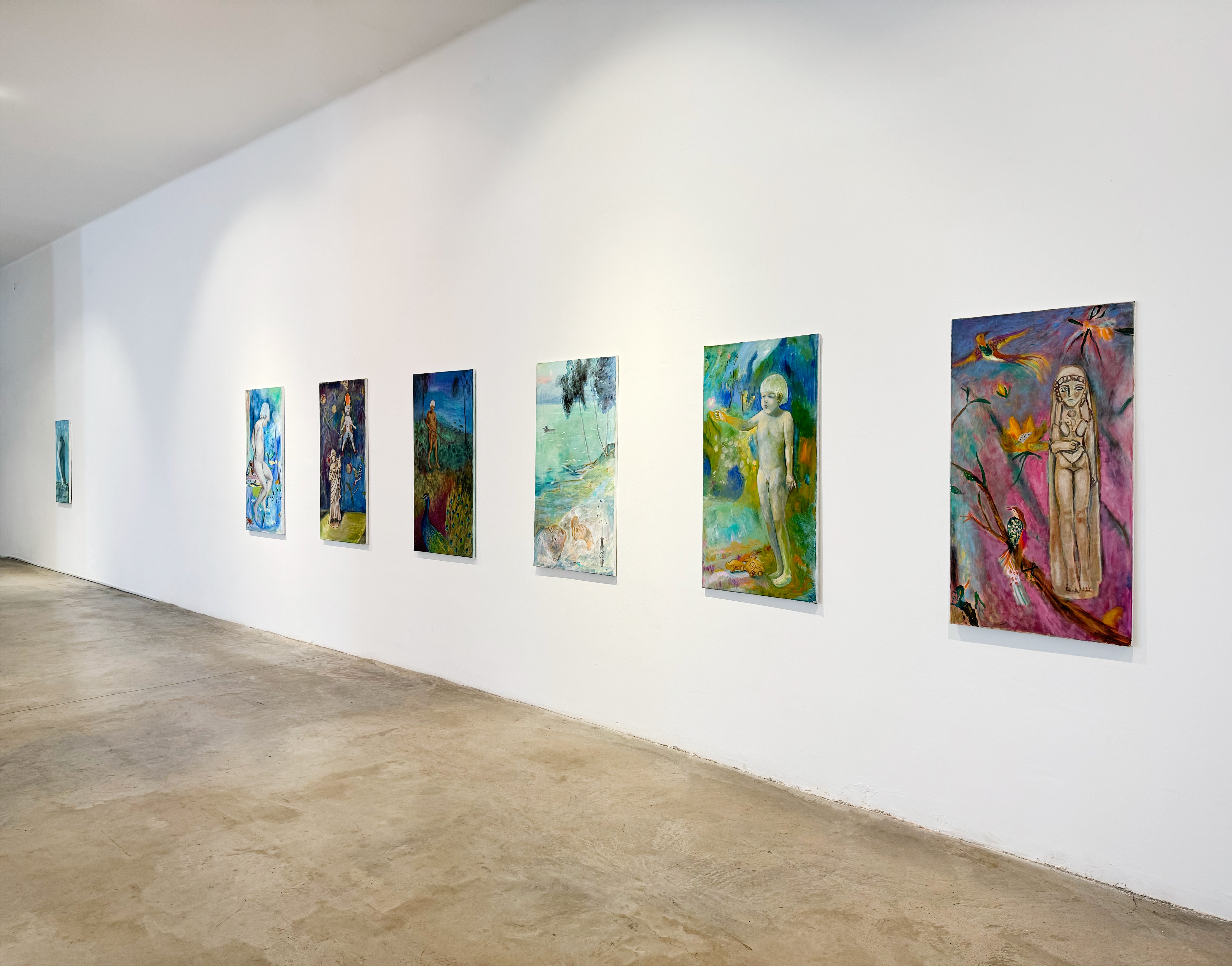 “The exhibition revolves around childhood and the childlike. In this work, I have felt a deep need to create space for vulnerability and softness, which I believe are essential qualities inherent in being human. It is also a way of offering a kind of “soft resistance” and a counterbalance to the troubled, and sometimes frightening, times we are living in. The work is a compendium of autobiographical and poetic memories. Many of the pieces are inspired by moments I experienced with my two sons when they were still young, reflecting a tender attitude and a sense of curiosity in their interaction with nature. It is about memory, but not in a literal sense; rather, it is about merging complex events into a feeling—remembrance as a dreamlike state. It is a way of smoothing out the humdrum of daily life, with its conflicts and dramas, and allowing the mysterious and magnificent experience of being alive to come to the foreground.” — Linnea Jensen