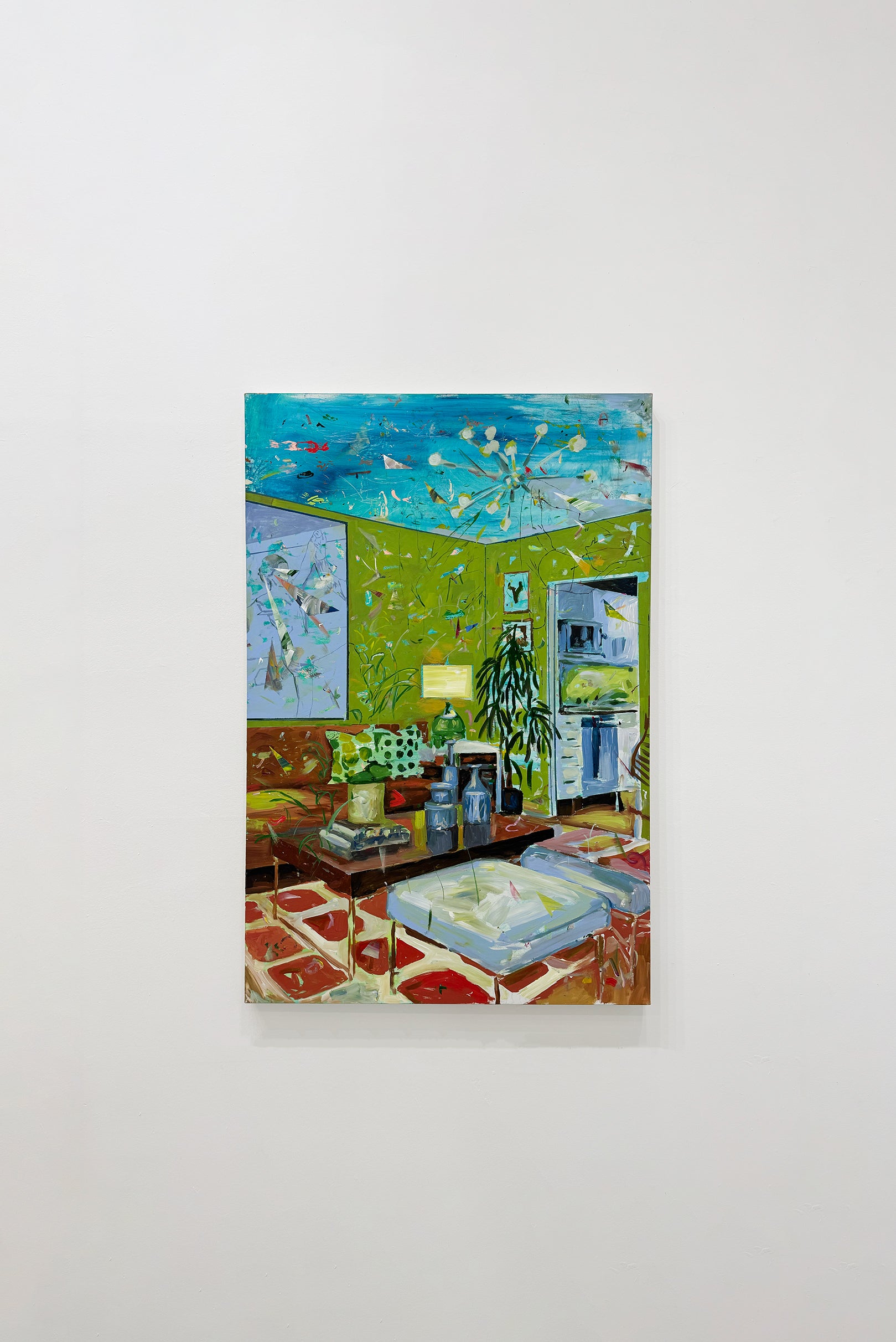 Gallace uses both domestic interiors and outdoor settings as bases for his sparse, disquieting canvases, in which human figures and animals are often present but never explicitly represented. The predominating sensation is one of loneliness which nonetheless leaves space for a pulsating vitality. Despite the melancholic tones, Gallace manages to engage viewers in a playful, mental exercise, in which they are invited to complete the narrative and fill in the gaps in shape, colour and volume deliberately left ‘unfinished’ by the artist.
